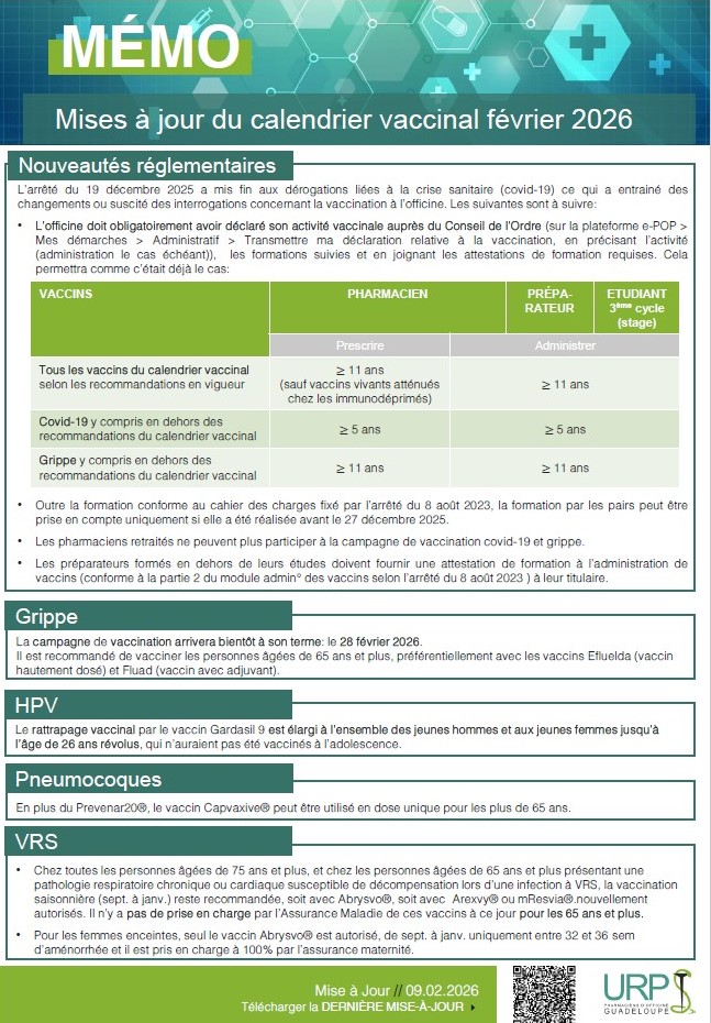 Le mémo ci-dessous vous détaille les principales nouveautés et le tableau des vaccinations vous permettra d’avoir un aperçu complet des vaccins actuellement disponibles pour chaque maladie.